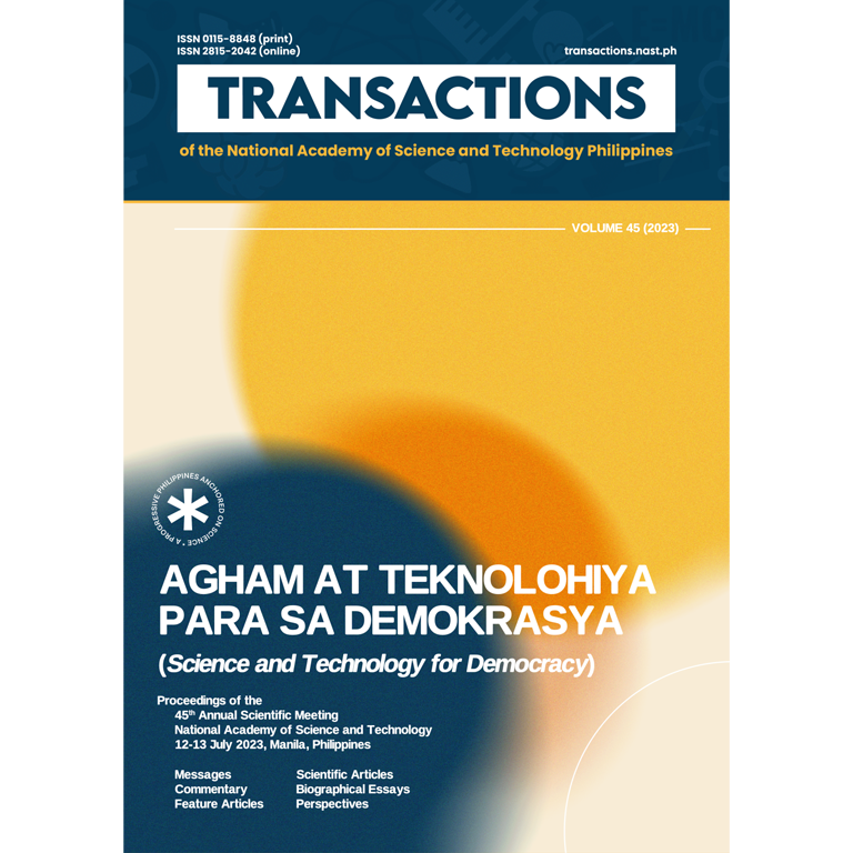 For the 42nd Annual Scientific Meeting (ASM) and 2020 Regional Scientific Meetings (RSM), the National Academy of Science and Technology Philippines (NAST PHL) adopted the theme: Science and Technology for Society: Solutions to Long-Standing Concerns. This annual gathering serves as a forum that convenes stakeholders from various sectors to discuss important and timely national issues and concerns towards formation of policy recommendations and actions. The 42nd ASM, held from July 7-10, 2020, focused on pivotal societal challenges including (1) food system and health, (2) energy and water, (3) environment, climate change, and blue economy, (4) ICT, shelter, and other infrastructure, and (5) science education and talent retention as well as the learnings from the COVID-19 pandemic to formulate policies or implementing guidelines in providing solutions to our long-standing woes.